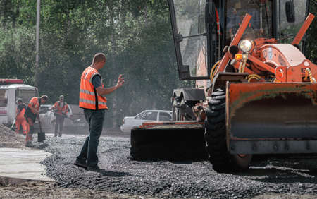 30th of August, Russia, Tomsk, road workers repair roadbed