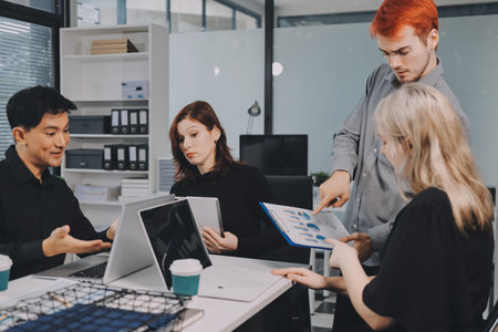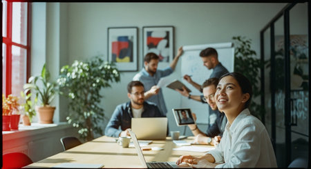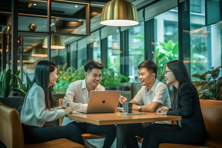 Driving Success through Productive Teamwork: Asian Young Professionals Unite in Office for Collaborative Business Strategies