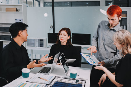 Businesspeople using laptops and discussing together in meeting room.Teamwork concept