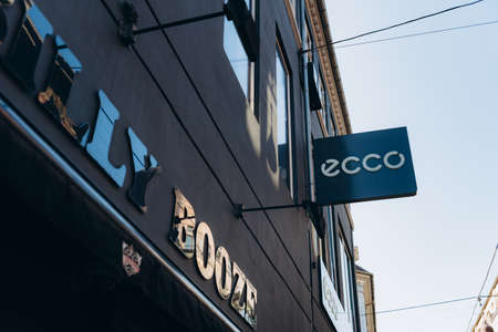 Copenhagen, Denmark - September 14, 2020. ECCO brand shop on shopping street in Copenhagen.