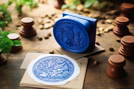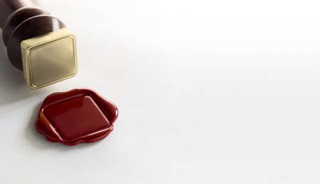 A wax seal rests on blank paper, highlighting a historical branding idea in a wooden environment.
