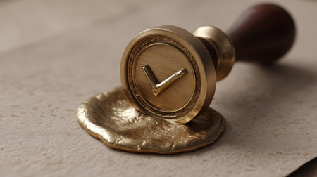 Golden Wax Seal Stamp with Check Mark Emblem. Generative AI
