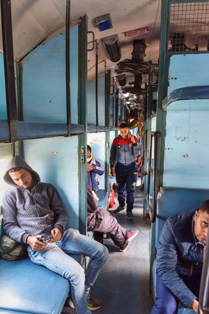 Sambhar, India - February 05, 2019: Indian Passengers in slepper wagon of train. Rajasthan