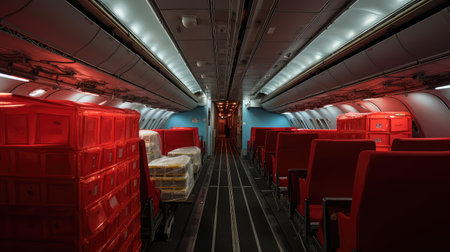 Empty passenger airliner, interior of the passenger airplane, travel, transportation,flying design concept