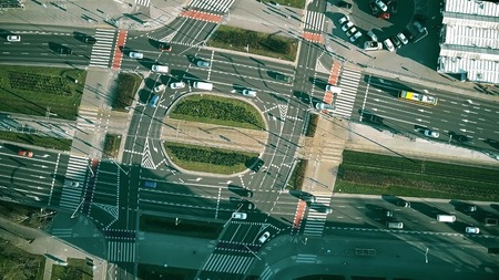 Aerial top down view of road traffic