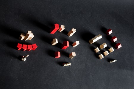 Human Resources concept. Square wooden tiles with one different shape and color. Picking up the most outstanding person from the pool of candidates for the job. Symbolism. Selective focus points.