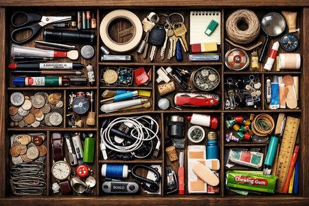 Overhead View of Tidy Storage Compartments for Stationery Hardware and Daily Essentials