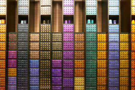 DUSSELDORF, GERMANY - CIRCA SEPTEMBER, 2018: inside Nespresso store in Dusseldorf. Nespresso machines brew espresso and coffee from coffee capsules, or pods.