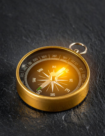 golden compass on dark background