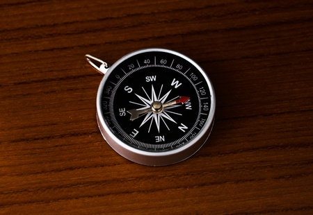 single compass on the surface of wooden table.
