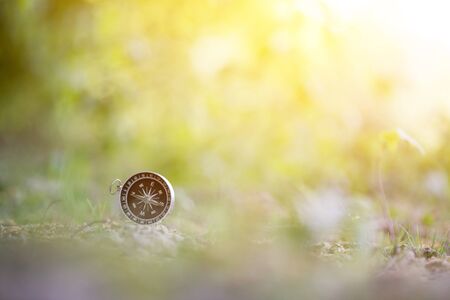 Compass in the forest. Vintage style. Selective focus.