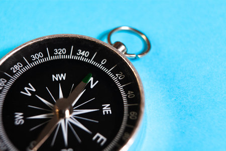 Compass on blue background, top view