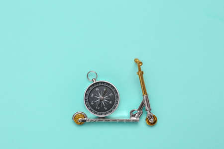 Scooter with compass on blue background