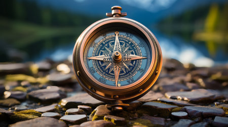compass on a hiking trail surrounded by nature, created with generative ai