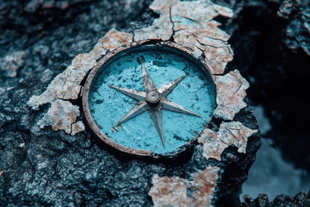 Vintage compass on cracked rock surface