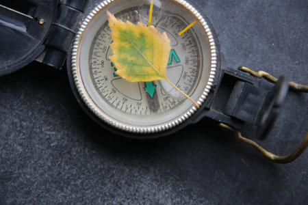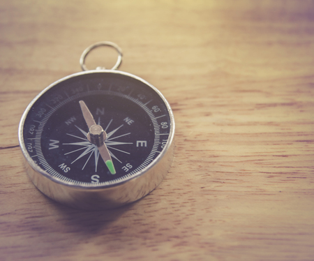 close up of compass on wooden background. High quality and resolution beautiful photo concept