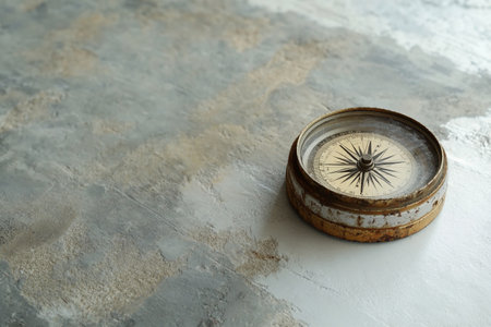 Vintage compass lying on the floor. Adventure and discovery concept.