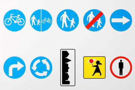 Lucerne, Switzerland - February 19, 2012: Display of the traffic signs at the exterior wall of the Swiss Museum of Transport in Lucerne, Switzerland. This museum exhibits all forms of transport.