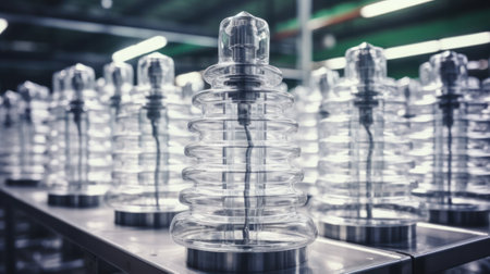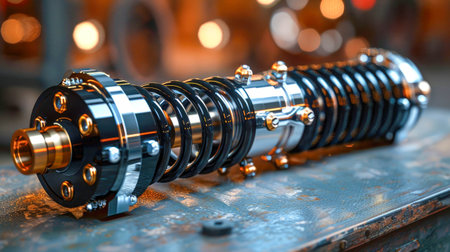A futuristic industrial heat exchanger with polished metallic details, bolts, and mechanical components in a high-tech setting.