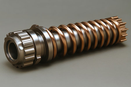 Close-up view of a metallic component featuring a copper and silver finish, ideal for industrial and engineering projects, showcasing intricate details and design.