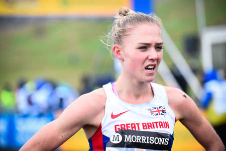EDINBURGH, SCOTLAND, UK, January 10, 2015 - elite athletes exhausted after the Great Edinburgh Cross Country Run. Woman