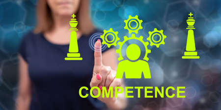 Woman touching a competence concept on a touch screen with her finger