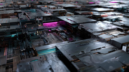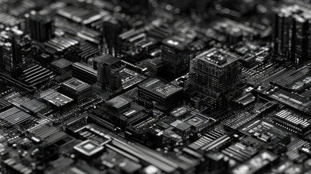 An abstract representation of microchips and electronic components arranged in an intricate pattern. This high-resolution image highlights various shapes and textures that emphasize innovation and technology. Perfect for tech-related themes.