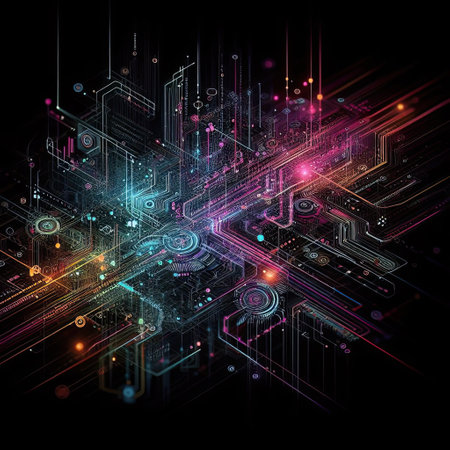 Circuit board-inspired patterns of connectivity --ar 3:2 Job ID: 922a94d5-c6fd-4d7b-9d3b-8f3ad7b98ff0