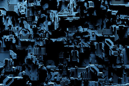 Futuristic printed circuit board. Abstract science fiction or technology concept. 3D rendering illustration
