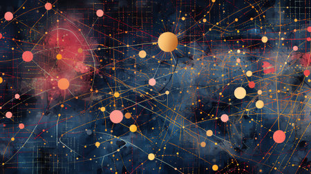 Illustration of Network Theory Using Nodes and Lines: Perfect for Tech and Scientific Conversations. Concept Network Theory, Nodes, Lines, Illustration, Tech, Scientific, Conversations