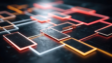This striking image features a composition of neon lines and shapes on a dark background, perfect for modern design projects, technology presentations, or artistic inspiration.