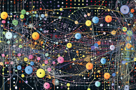 Generative AI : Line and dot pattern and colorful space background Elements of this image furnished by NASA