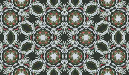 Seamless circular vector pattern. Colored decorative repainting background with tribal and ethnic motifs. Abstract floral geometric lace. Symmetrical flower ornament.