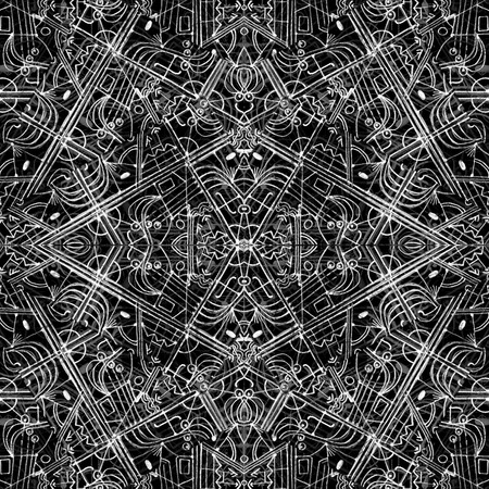 Digital style technique modern abstract geometric ornate ethnic or tribal style seamless pattern design in black and white colors.