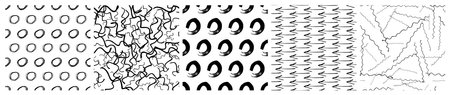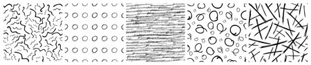 Set of seamless patterns with dark hand drawn scribble smear on white background. Abstract grunge texture. Vector illustration
