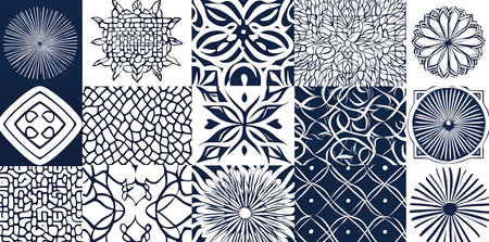 Set of abstract geometric shapes forming seamless patterns, offering a versatile asset for various design projects