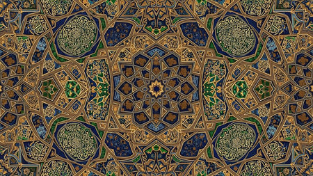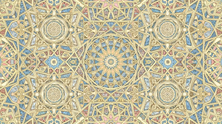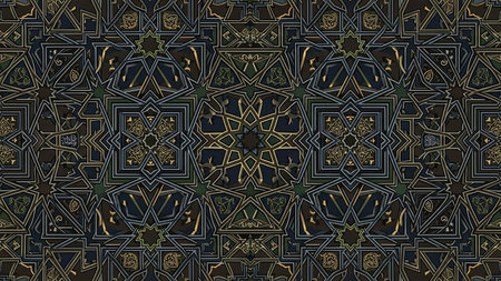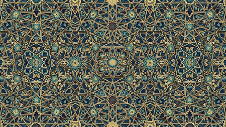 showing intricate geometric islamic pattern with gold blue and dark tones. resolution use.