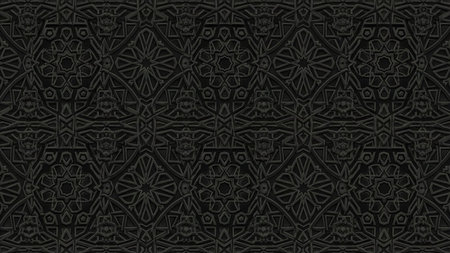 Gray showing monochromatic dark gray embossed geometric pattern with intricate star and interlocking shapes creating a textured and background. resolution...