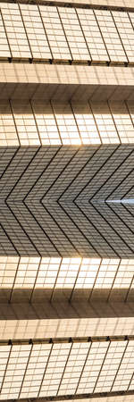 Abstract symmetric architecture background pattern collage of skyscraper building wall with windows. Colorized collage of skyscraper