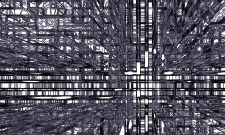 Longitudinal and crossed 3d render textures in shiny gradient style. Random intertwining roads in endless maze. Surface of ancient alien ship with energy flow diagram.
