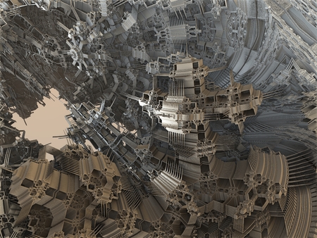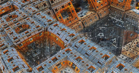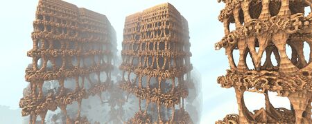 Fractal bridge building. Abstract Computer generated Fractal design. 3D Illustration of a Beautiful bridge future city