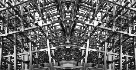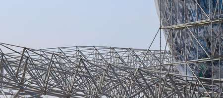 Background, texture from a view of a fragment of a metal frame lattice roof
