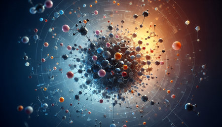 Abstract background, explosion, fission of the atomic nucleus, sci-fi, 3D rendering
