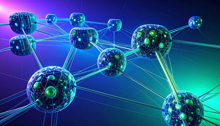 High-tech diagram of a neural network with nodes and feedback loops glowing in bright colors
