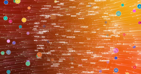Digitally generated image of global connections with text over orange background. global communications, technology and networking concept.