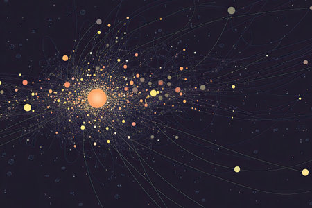 Generative AI : Line and dot pattern and colorful space background Elements of this image furnished by NASA