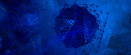3d illustration of abstract background with blue and orange spheres and wires