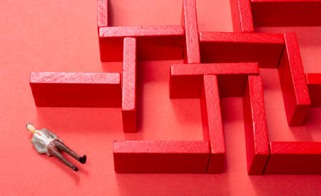 The concept of a business strategy, analytics, search for solutions. Labyrinth of colorful wooden blocks.