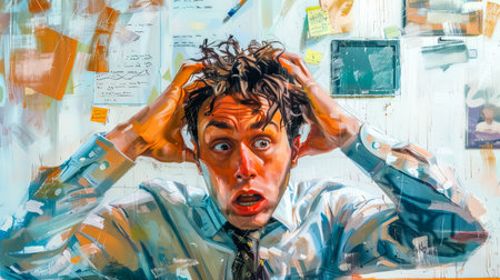 Stressed businessman pulling his hair out in panic