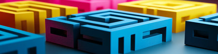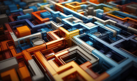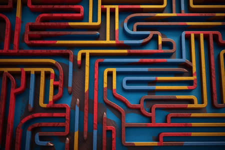 Vibrant and detailed 3d multicolor wooden labyrinth puzzle with abstract patterns and intricate geometric structure